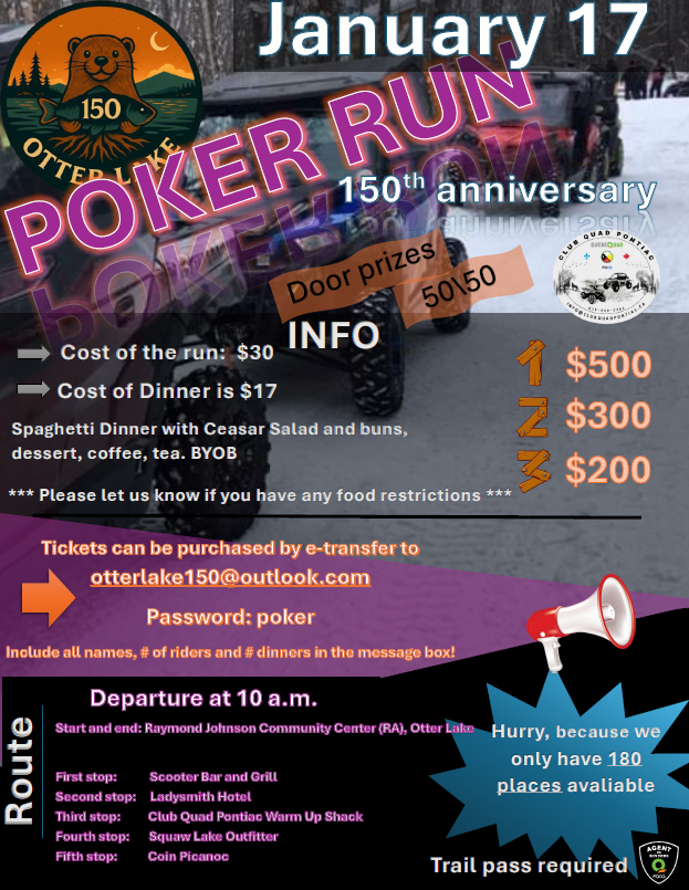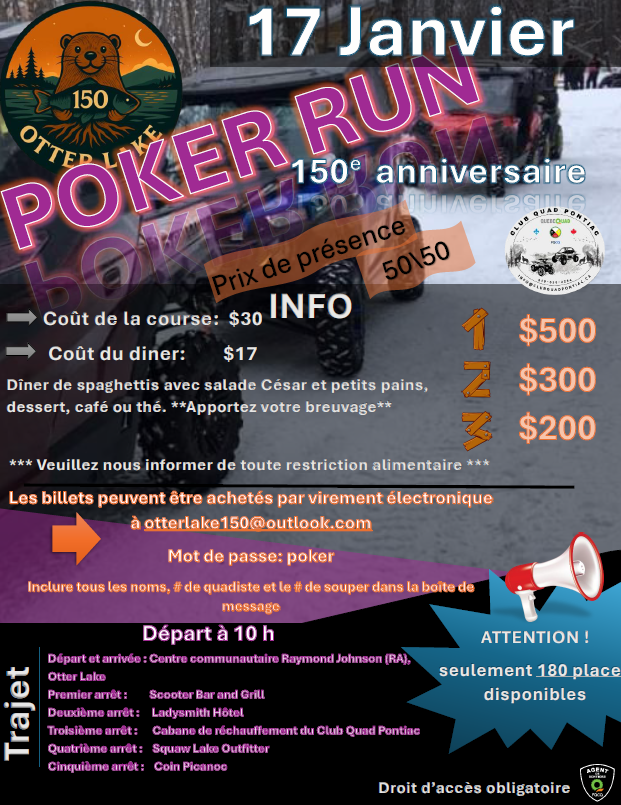 POKER RUN du 150e anniversaire d’Otter Lake 150th anniversary POKER RUN